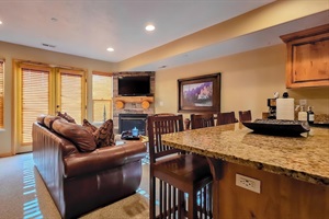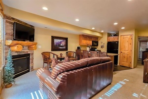 As you step inside, you'll be greeted by a warm and inviting atmosphere. The living area boasts comfortable seating, ideal for unwinding after a day of exploring the outdoors or hitting the nearby ski slopes. Relax on the plush couch while enjoying your favorite shows on the flat-screen TV, or gather around the fireplace for a cozy evening with loved ones.